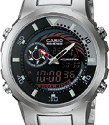 протиударні, світлодіодне підсвічування, світовий час, 1/100-с секундомір, таймер, яхт-таймер, 5 будильників, календар, ремінець з полімерного матеріалу, розміри корпусу: 46,3×43,4×15,8 мм, вага 47 гр