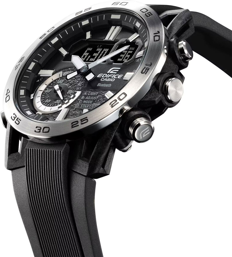 Годинник CASIO ECB-40P-1AEF з колекції Edifice – це стильний і функціональний спортивний годинник для чоловіків. Володіючи кварцовим механізмом, вони забезпечують точність ходу і надійність. Корпус годинника виконаний з карбону, що надає йому легкість і міцність. Чорний колір корпусу і мінеральне скло додають елегантності цьому аксесуару. Годинник водонепроникний до 100 метрів і оснащений індикатором дати, дня тижня і місяця, а також секундоміром, будильником і таймером. Завдяки функції Bluetooth і сумісності з пристроями iOS і Android, він дає змогу використовувати зручні функції підсвічування, другого часу і віддаленого пошуку телефону. Годинник CASIO ECB-40P-1AEF – це не тільки надійний хронометр, а й стильний аксесуар, що підходить як для активного відпочинку, так і для повсякденного життя. У комплекті з годинником йде гарантія на 24 місяці, що підтверджує високу якість продукції Casio.