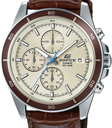 Модель чоловічого годинника EFR-512L-8A колекції Casio Edifice має корпус круглої форми виконаний з нержавіючої сталі з PVD, з циферблатом чорного кольору та індексами захищеним мінеральним склом. Шкіряний ремінець чорного кольору, хронограф кварцовий. А додаткові функції: Дата, Тахіметр надають зручність. У цьому годиннику можна плавати і пірнати на невелику глибину до 3-5 метрів.