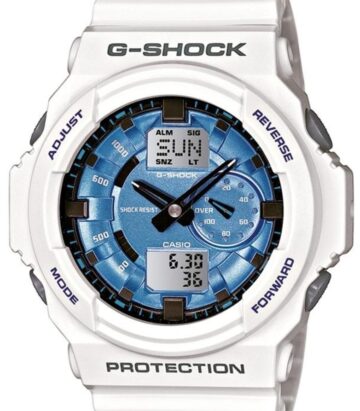Модель чоловічого годинника GA-150A-3A колекції Casio G-Shock має корпус круглої форми виконаний з полімеру, з циферблатом зеленого кольору та індексами захищеним мінеральним склом. Пластиковий ремінець зеленого кольору, кварцовий + електронні механізми. Додаткові функції: Удароміцні, Повністю автоматичний календар, Світовий час, 12/24 годинний формат часу, Світлодіодне авто-підсвічування, Секундомір, Таймер зворотного відліку, Будильник, Функція повтору сигналу, Магнітостійкі. Ця модель годинника підходить для дайвінгу.