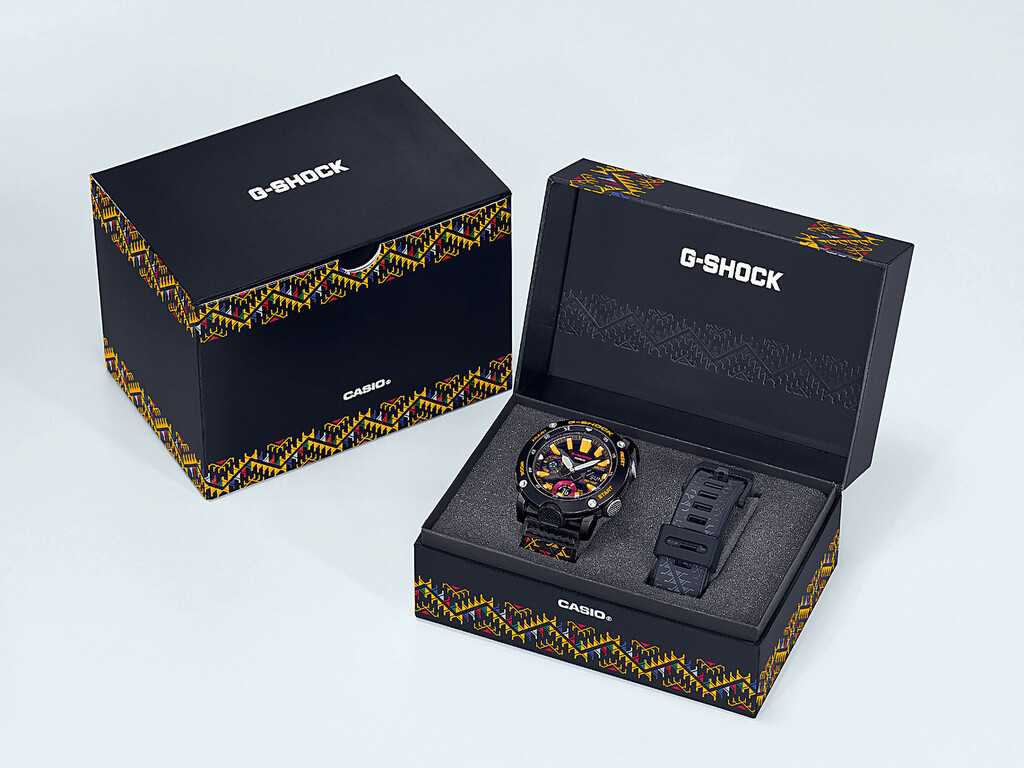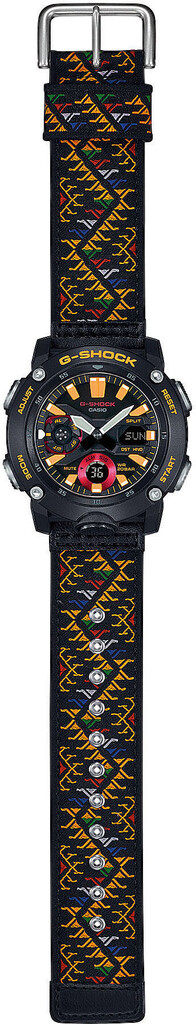 У годиннику розташована індикація дати. Цей протиударний, багатофункціональний годинник став проявом найвищого мистецтва та інженерної майстерності. Корпус із вуглеволокна Carbon Core Guard забезпечує цьому годиннику неймовірну міцність і легкість, а задня кришка зі сталі надає йому додатковий захист. Завдяки пружному затвору, ремінець легко і швидко змінюється, а в комплекті йде ще один додатковий полімерний. Також з боків корпусу розташовані чотири кнопки з ребристою поверхнею для ввімкнення функцій і налаштування. У районі шостої години розташована кнопка підсвічування з потужним світлодіодним підсвічуванням і ефектом післясвітіння. Загартоване мінеральне скло стійке до подряпин. На циферблаті багатошаровому об’ємному з цифровими дисплеями відображається час у цифровому форматі або число, місяць, день тижня і відлік секунд на вибір. А на дев’яти годинах розташована індикація дати. Унікальне строкате забарвлення цього годинника символізує основні стихії в буддизмі: земля, вода, вогонь і повітря.