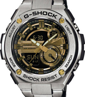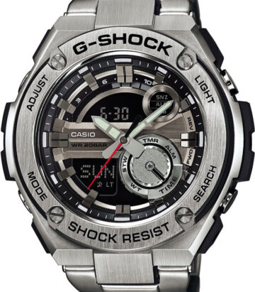 Інженер компанії CASIO, Кікуо Ібе поставив собі за мету створити універсальний годинник, який би не боявся падінь і ударів. Після серії проб і помилок у 1983 році компанія представляє серію G-SHOCK, ця серія перевершила всі найсміливіші очікування і поставила нову, недосяжну планку в сегменті годинників для активного способу життя. По сьогоднішній день серія G-SHOCK постійно еволюціонує і по праву є однією з найбільш продаваних лінійок компанії CASIO. Нова модель GST-W110D-7AER є представником преміум сегменту колекції G-SHOCK. Головною відмінністю від більшості моделей є металевий браслет, а також елементи корпусу, які також виготовлені з нержавіючої сталі, тому загальна вага годинника становить 195 грамів. Параметри корпусу становлять 59.1х52.4×16.1 мм, скло мінеральне, для більшого захисту глибоко втоплене в корпус годинника. Індикація часу комбінована, у годиннику представлено такі функції, як світлодіодне автопідсвічування, радіоконтроль точного часу, світовий час, таймер, секундомір, 5 звукових сигналів, календар, а також у годиннику замість традиційного елемента живлення встановлено сонячну батарею. Як і всі моделі цієї серії, годинник протиударний і рівень водозахисту в ньому становить 20 атм.