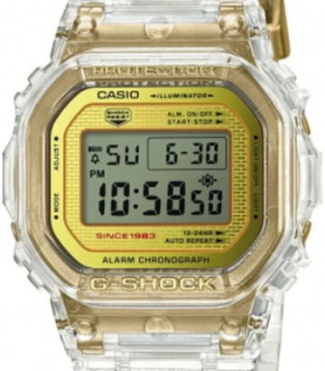 DW-5600NE-1 – це прекрасна шана співпраці з брендом New Era. Для відзначення 35-річчя G-Shock цей годинник був оснащений золотою застібкою і золотими акцентами на лицьовій стороні. Він вирізняється квадратною формою і темним забарвленням, що нагадує оригінальні G-SHOCK, а також логотипами New Era на лицьовій і задній частинах. Для підкреслення цієї важливої співпраці колекційну упаковку годинника було виготовлено у вигляді кепки New Era з логотипом 35-річчя G-SHOCK, що відбувалося 2018 року.