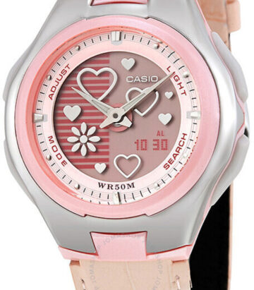 CASIO LW-200D-4BVEF – це модель діаметром 35 мм з цифровим циферблатом. Корпус годинника зроблений із пластику з полімерним ремінцем рожевого кольору, що робить годинник легким і зручним у носінні. Крім основних функцій, як-от секундомір, світовий час, календар і 24-годинний формат часу, годинник може показувати одночасно час у двох часових поясах, що дуже зручно для тих, хто багато подорожує. А електролюмінесцентне підсвічування, що вмикається кнопкою на циферблаті, допомагає з легкістю користуватися годинником у темряві. Сам годинник оснащений кварцовим механізмом, з терміном служби батарейки до 10 років і рівнем водозахисту в 5 BAR, що означає, що годинник можна використовувати під час прийняття душу.